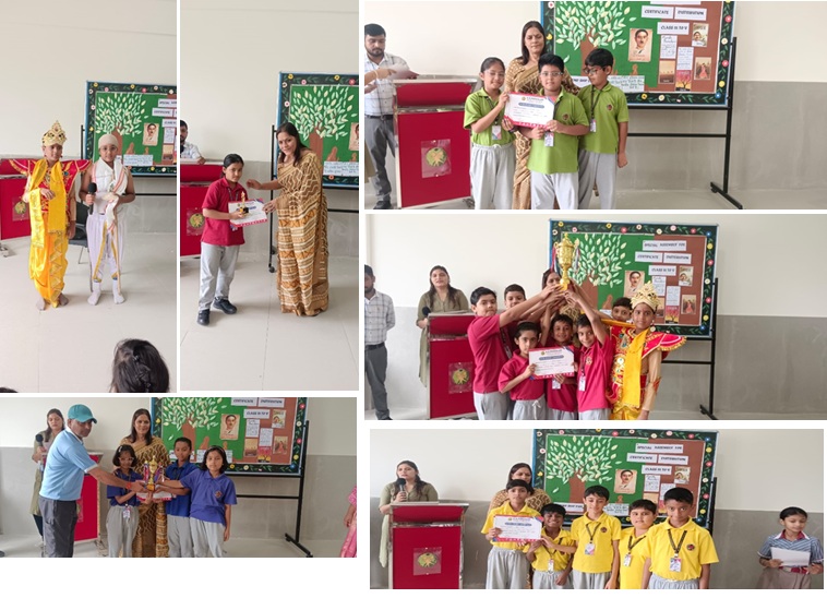 The celebration concluded with a proud moment for students of Grades 3, 4, and 5 as they received trophies and certificates for their achievements in various competitions held in the school. The stage sparkled with smiling faces and applause, encouraging all students to keep striving for excellence.