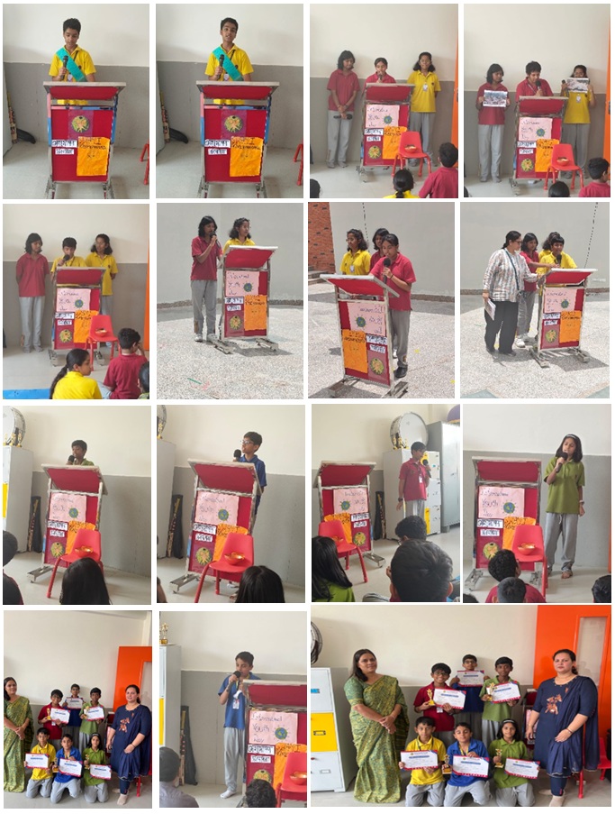 The day also featured the exciting and intellectually stimulating Hindi Aashu Bhashan Competition for Grades 6 and 7, where participants showcased their quick-witted thinking and fluent speaking skills with remarkable confidence.