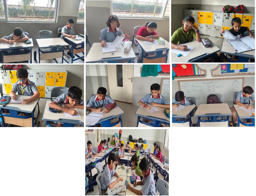 The Story Writing Competition for Grades III, IV, and V was held with the aim of encouraging students to express their ideas creatively and enhance their writing skills. The participants wrote beautiful stories on meaningful themes such as friendship, kindness, truthfulness, loyalty, and more.